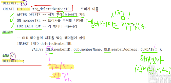 -ํ ์ด๋ธ์ ๋ถ์ฐฉ๋์ด์, ํ ์ด๋ธ์ INSERT๋ UPDATE ๋๋ DELETE ์์ ์ด ๋ฐ์๋๋ฉด ์คํ๋๋ ์ฝ๋