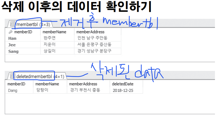 -- ๋ฐ์ดํฐ๊ฐ ์ญ์ ๋์์ ๋,๋ณ๊ฒฝ๋์์ ๋, ์ถ๊ฐ๋์์ ๋์