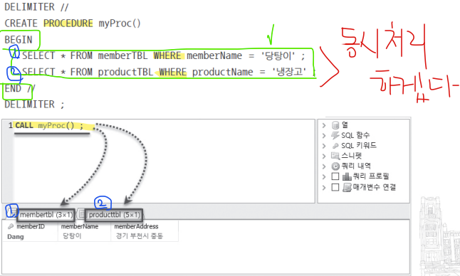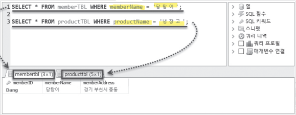 -- memberTBL ์์ memberName, memberAddress ๋ฅผ ์ฐพ์์ค๊ฒ๋ค(SELECT).