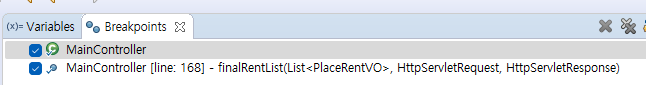 Breakpoints를 살펴보니 mainController 전체가 breakpoints로 잡혀있는게 문제였다. 언제 저렇게 해놨는지 기억은 안나지만... MainContoller를 삭제하고 내가 찍은 부분만 남겨두니 정상적으로 작동이 된다.