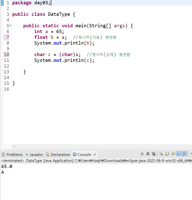 : λ³μλ μμμ λ°μ΄ν° νμ (μ¦, μλ£ν)μ λ€λ₯Έ νμ μΌλ‘ λ³ννλ κ²