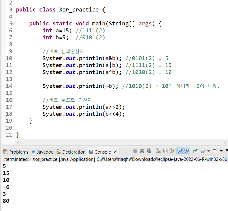 ๋นํธ ๋ ผ๋ฆฌ์ฐ์ฐ์์ ๋นํธ์ฌํํธ์ฐ์ฐ์ ์ถ๋ ฅ๊ฒฐ๊ณผ