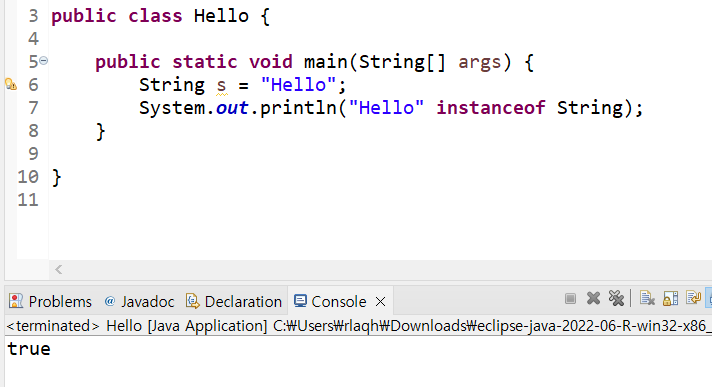 4) instanceof ์ฐ์ฐ์ : ๊ฐ์ฒด์ ํ์ ์ ํ์ธํ๋ ์ฐ์ฐ์