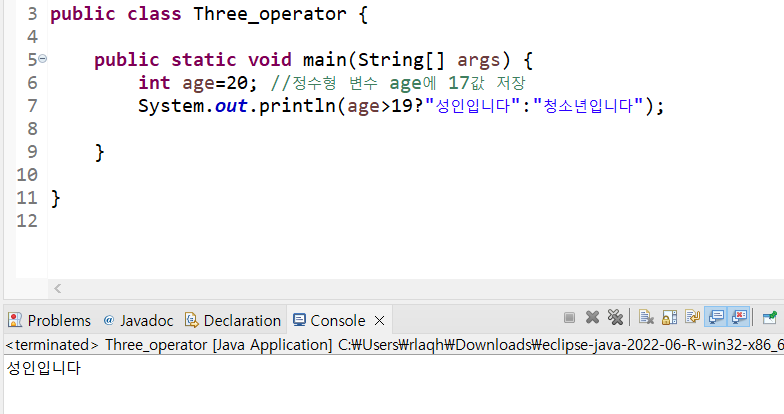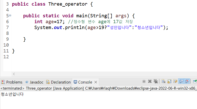 (์กฐ๊ฑด)?์ฐธ์ผ๋ ๊ฐ : ๊ฑฐ์ง์ผ๋ ๊ฐ // ?์ :์ด ์ฐ์ฐ์์ด๋ค.