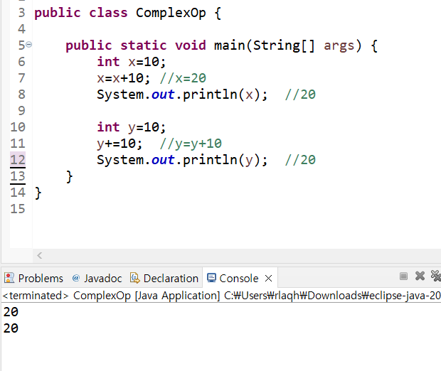 ex) x += 3; // x = x + 3; ์ ๊ฐ๋จํ๊ฒ ํํํ ๊ฒ.