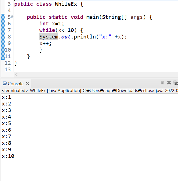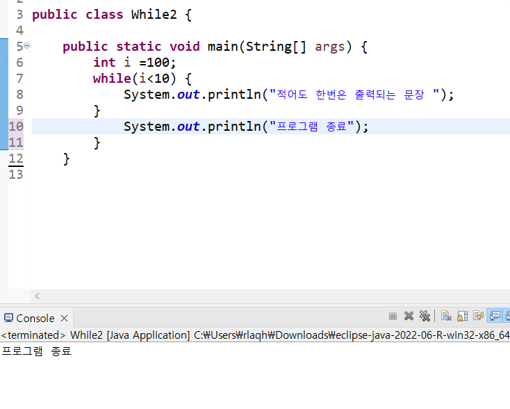 * while문은 조건이 거짓이면 단 한번도 실행되지 않는다.